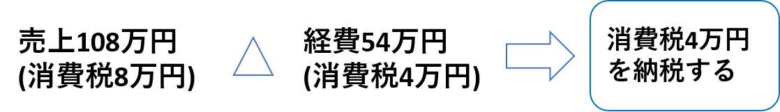 売上にかかる消費税から経費などを支払った時に払った分を引くという図式です。