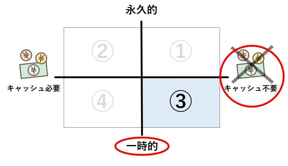法人の節税対策3つ目は、節税効果が「一時的」で「キャッシュ不要」の対策についてです。