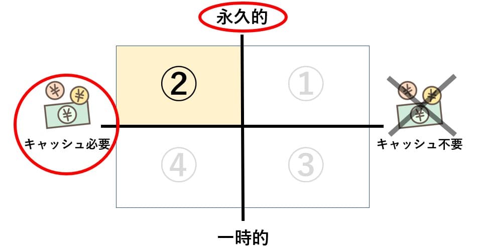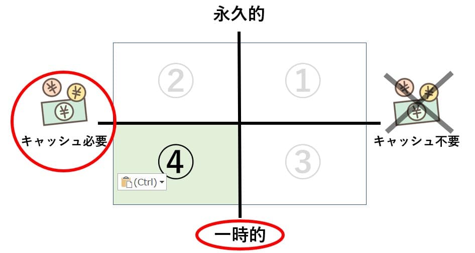法人の節税対策、最後の4つ目は、節税効果が「一時的」で「キャッシュ必要」についてです。