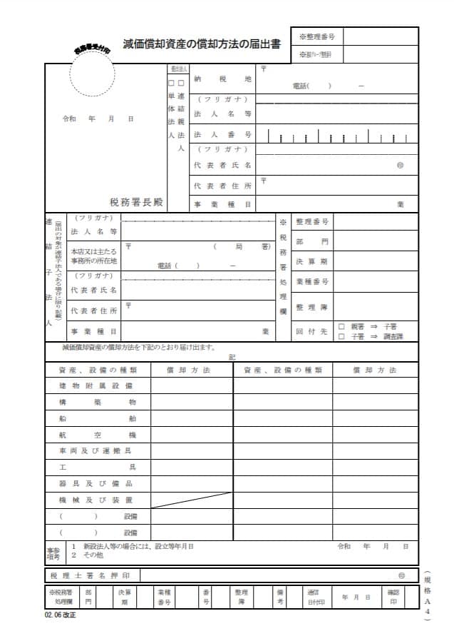 設立後にあえて他の償却方法を選ぶ場合は必ず提出してください。
