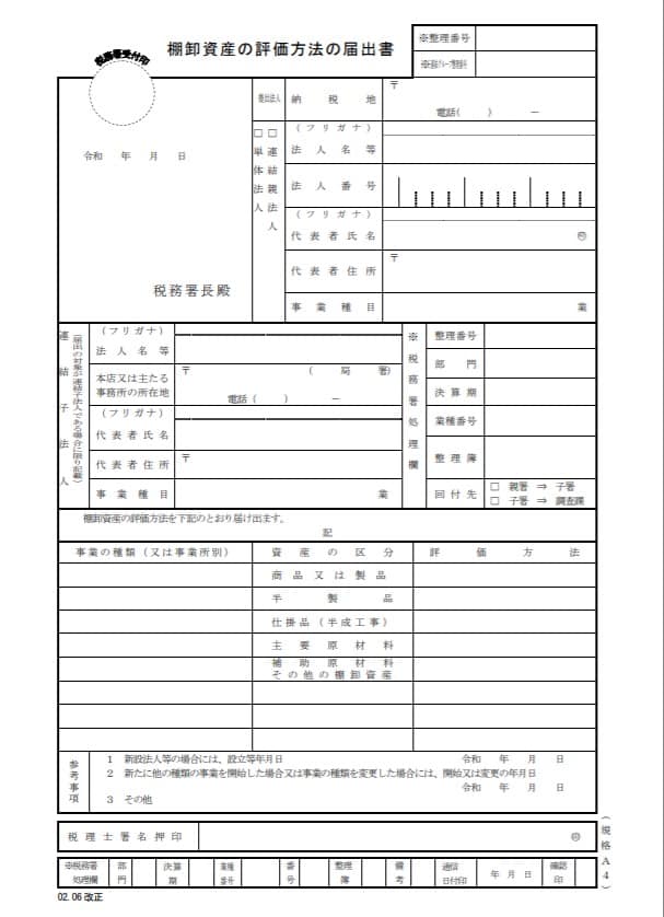 しかし棚卸資産は、評価方法によって利益の額が変わってきますので、必要な場合は会社設立後すみやかに提出した方がよいでしょう。