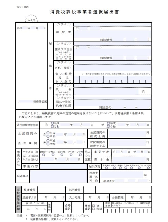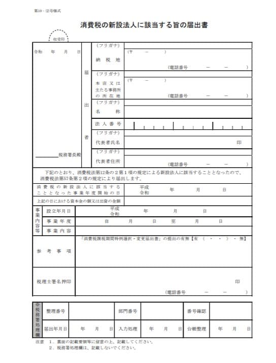 なお会社設立時の法人設立届出書を提出する際、消費税の新設法人に該当する旨を記載した場合には、不要となります。