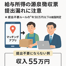 例えば「同じ企業と年間50万円以上働けない」よう制御されているケースもありますが、これもアプリ単体での管理に限界があるため、実際の給与総額が50万円を超えた場合には提出義務が発生します。